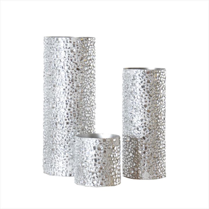 LIMA Set of 3 ornamental vases/candle holders (flowers/candles to be ordered separately) COLOR Silver DIMENSION Length: 18 / 18 / 22 cm Width/Depth: 18 / 18 / 22 cm Height: 20 / 45 / 58 cm PACKING Pluriball Length: 25 cm Width/Depth: 25 cm Height: 65 cm RENTAL PRICE RENTAL PRICE FOR 1/2 DAYS 3/5 DAYS 6/7 DAYS 25,00 € 25,00 € 25,00 € Net price based on 1/2 days - 3/5 days - 6/7 days rental, excluding transport/delivery/pick-up, positioning, insurance, VAT RENTAL PRICE FOR TRADE FAIR All-inclusive price incl. rental, transport, delivery/ pick up directly at your booth/stand.