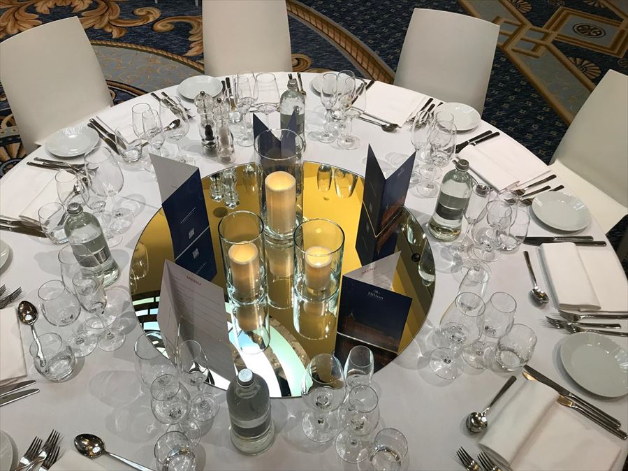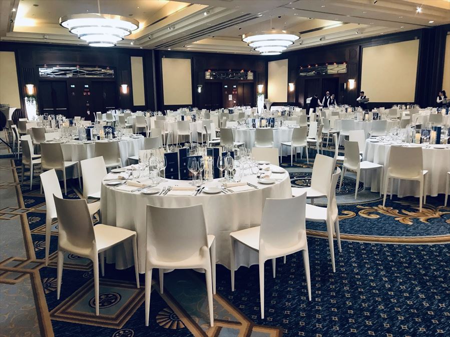 Blue and white welcome dinner Client Private Client Location Hilton Molino Stucky Products BELLINI CHAIR WHITE, BOHEMIA TRIO, ERIC XEBER MIRROR 80 Download GO TO PRODUCTS