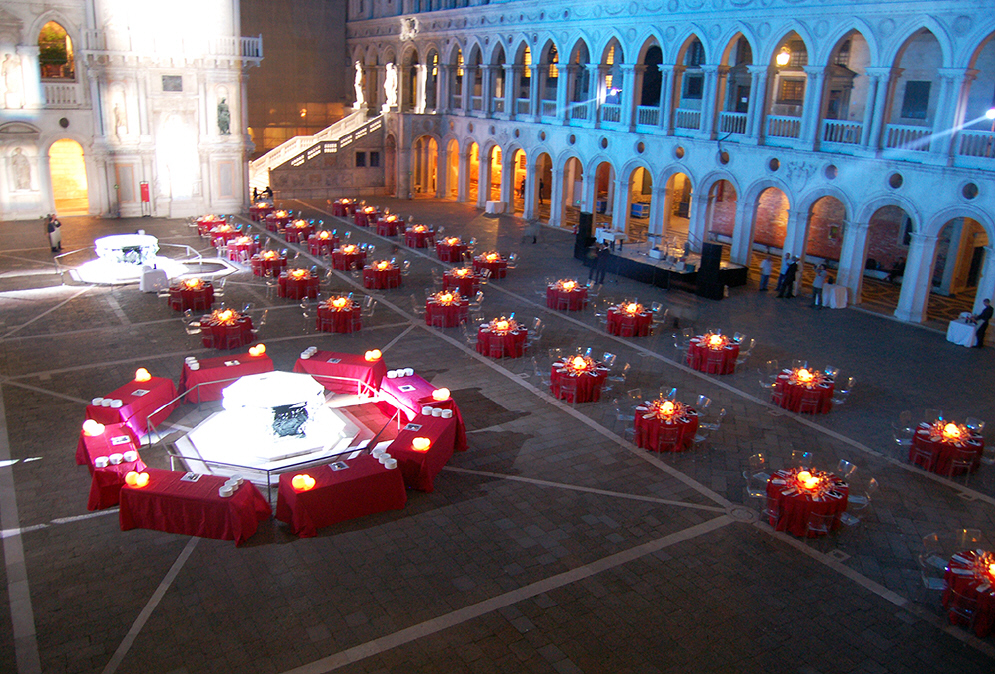 Biennale Architecture Gala Dinner at Palazzo Ducale Venice, September 2006 - Collaboration with Luca Sacchi Client Fondazione La Biennale di Venezia Location Palazzo Ducale Products VICTORIA GHOST, XENIA RED, XES Download GO TO PRODUCTS