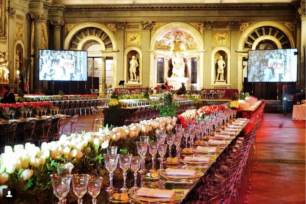 The dream setting of flower artist Vincenzo D'Ascanio for this year's Duco Travel Summit in Florence. The Titì fireproof transparent chairs only at design4rent