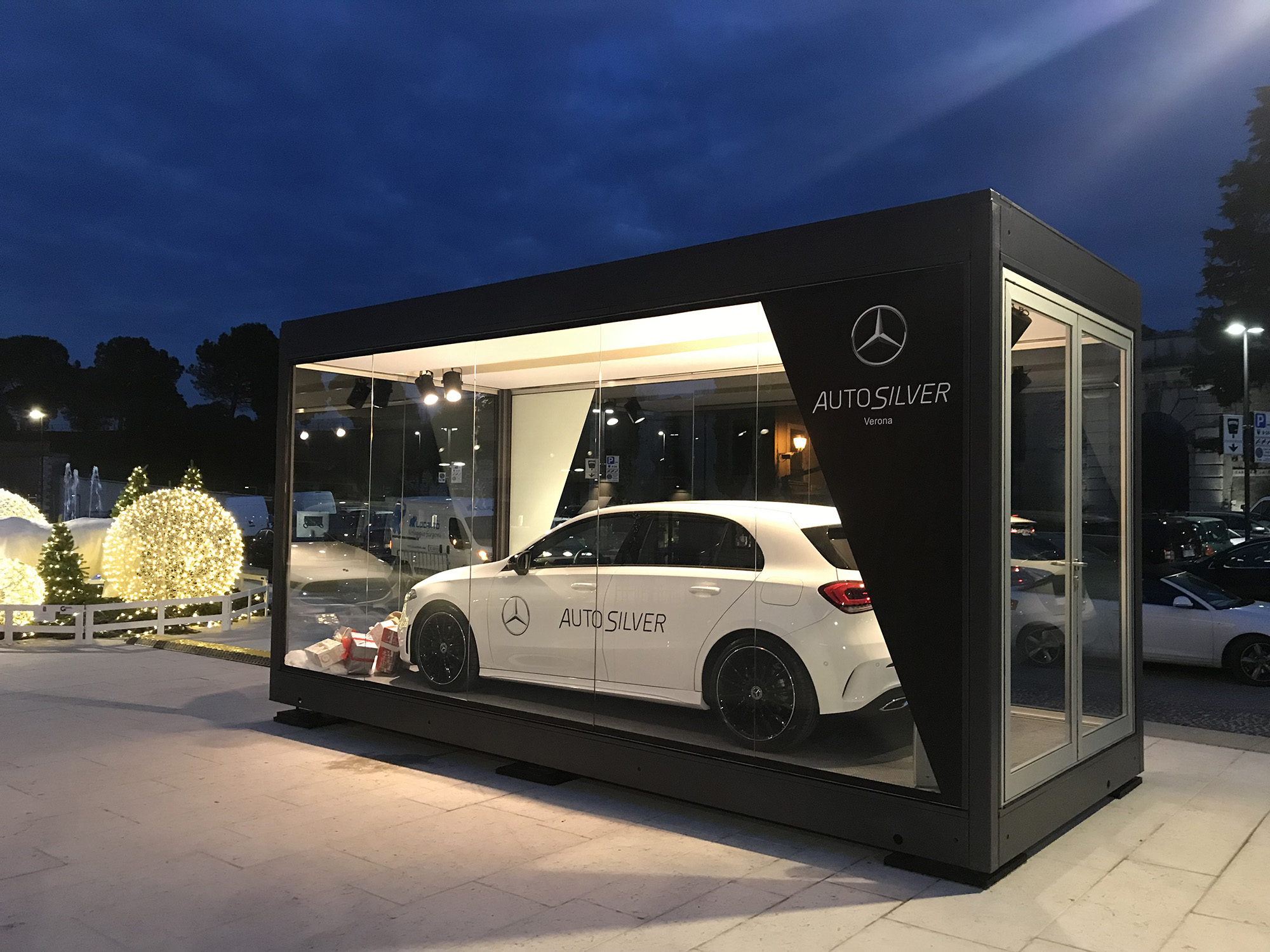 Mercedes Viewbox An elegant car display for the Christmas period in Peschiera. Client Mercedes Benz Location Piazza Ferdinando Savoia Products VIEWBOX STRUCTURE GREY Download GO TO PRODUCTS