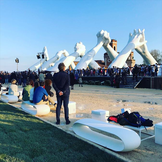 Halcyon Gallery Inauguration of Lorenzo Quinn's Building Bridges Sculpture during the 58th International Art Exhibition of the Venice Biennale. Client Halcyon Gallery Location Arsenale Nord Agency Your Event Products CADIZ W, CUBOO, DARWIN, ONE COUCH, ONE POUF Download GO TO PRODUCTS